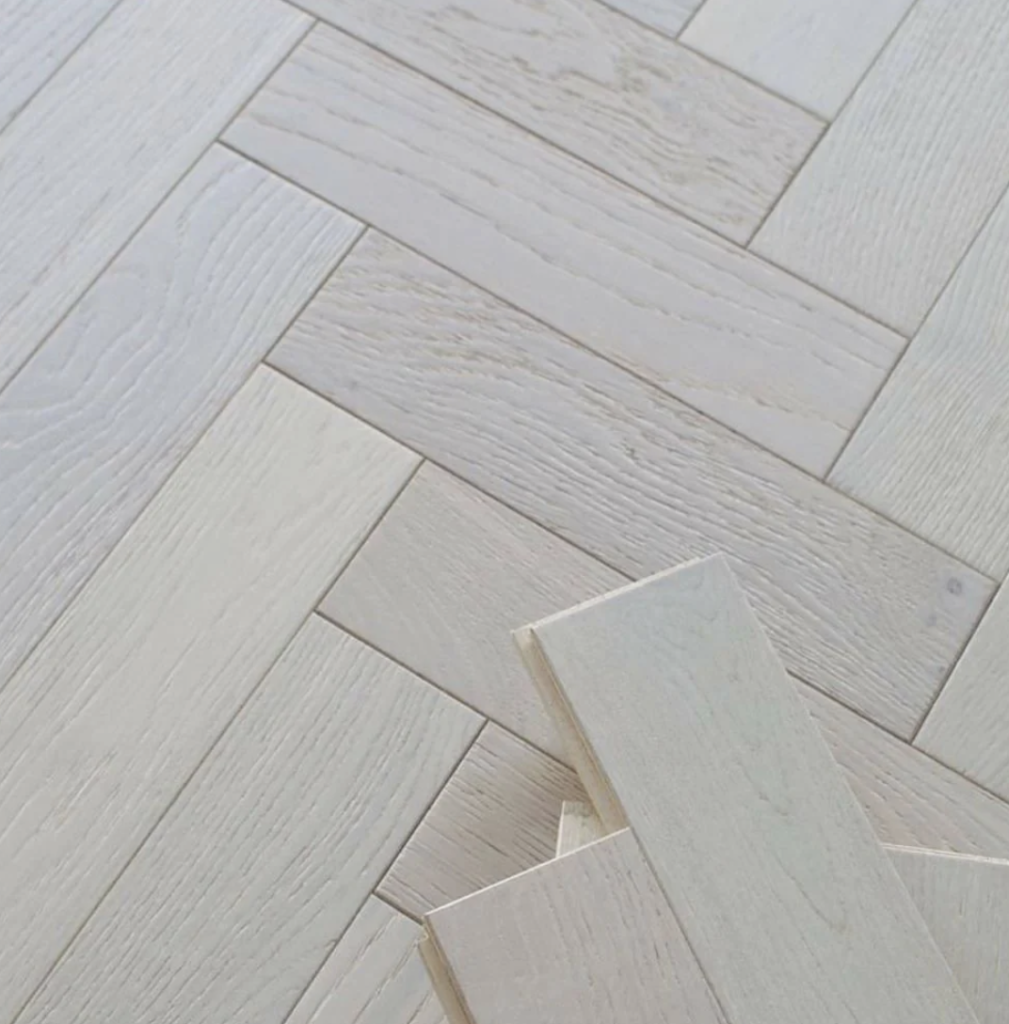 Engineered parquet flooring has grown in popularity in recent years due to its unique patterned arrangements. Homes and floors can now come in a considerably broader selection of sizes and hues than ever before. This engineered floor is a white oak herringbone timber flooring plank 18 x 80 x 300 (mm). The brushed surface, stained with a white mahogany wood floor appearance, underlines the natural grain of the oak wood, which is effectively protected by a matt lacquered finish. The 3mm wear layer can be sanded and polished for a longer lifespan. Because of the tongue and groove installation, this parquet herringbone oak floor is secure and does not creak or slide when glued down.